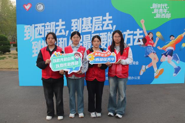 为进一步弘扬志愿服务精神,做好2026年大学生志愿服务西部计划政策宣传招募工作,4月7日,太阳集团城娱8722于东校区逸夫图书馆南侧校训石前举办“向西而行,不负青春”西部计划招募会,学院党委副书记、副院长刘凤芹,团委书记史仁扩到场参加。