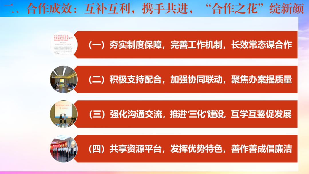 会议强调,“室校地”加强协作、携手共进是深入学习贯彻习近平总书记重要讲话精神,持续深化纪检监察体制改革,推动新时代纪检监察工作高质量发展的必然选择。要在战略谋划上突出“大视野”,提高政治站位,明确根本任务、工作定位和实践路径,运用系统思维,推动“室校地”联动协作有序。要在发展导向上突出“高质量”,从理念思路、体制机制、方式方法、能力作风等方面,探索“室校地”协作高质量发展的新思路、新途径、新方法,做到坚持巩固与完善发展、整体推进与重点突破、互联共建与自身提升相结合。要在任务部署上突出“抓落实”,细化完善责任落实机制、问题解决机制、调度督导机制,建立科学管用、系统衔接、运转协调的制度体系,凝聚“室校地”协作合力,推动纪检监察工作高质量发展。
