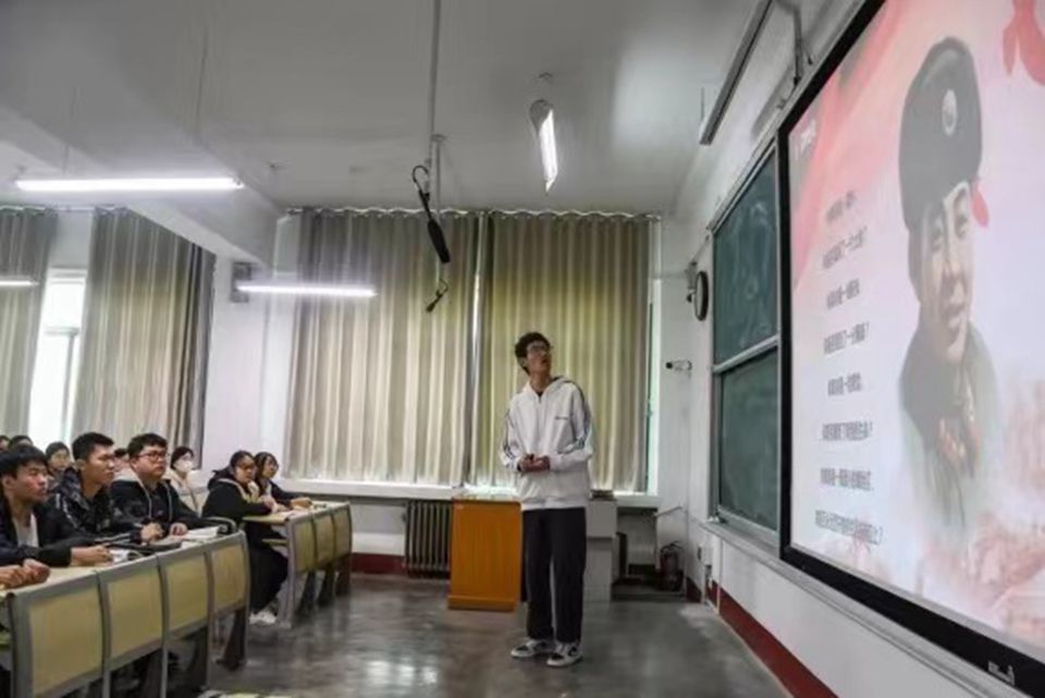 在董怀良老师的课堂上,2022级园林专业学生刘浩煜从“什么是雷锋精神”出发,详细阐释了“为人民服务精神”“螺丝钉精神”等雷锋精神的不同含义,并以聊大师生举例,说明“雷锋精神永不过时”,倡导大家要向参加职业技能大赛、投身科研、敬业工作的师生学习,争做“教育的螺丝钉”“科研的螺丝钉”“人民的螺丝钉”。为了这场五分钟的思政课,她已经翻阅了一周的资料,看完了《雷锋故事》整本书。董老师说,“一听说讲‘雷锋精神’思政课,就有十几个同学争先恐后地报名。刘浩煜同学在准备的过程中多次与我商讨修改,讲课稿里也加入了她自己对‘雷锋精神’的理解,她的进步很大”。