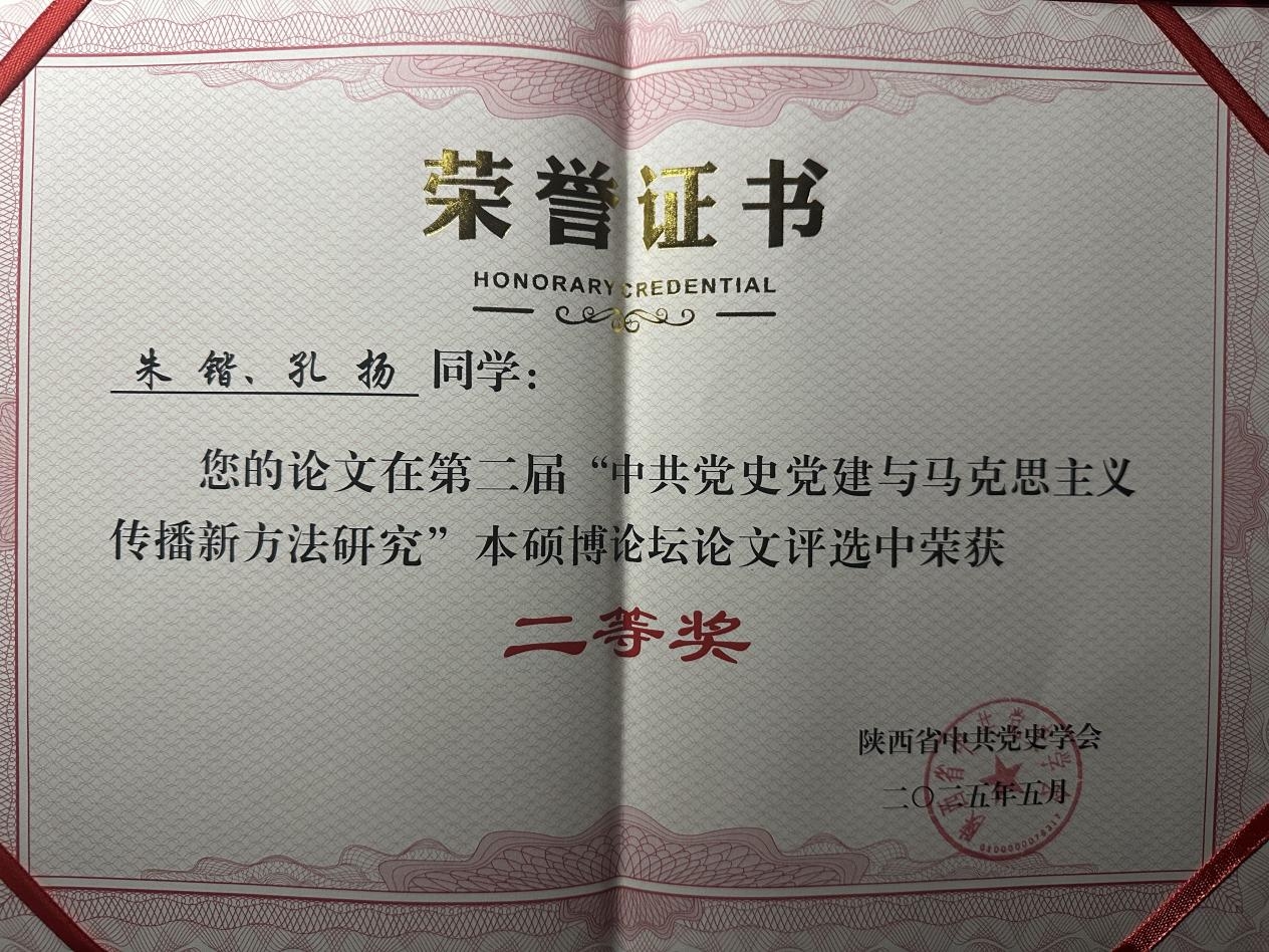 5月17日上午,第二届中共党史党建与马克思主义传播新方法研究本硕博论坛在西安邮电大学长安校区东区逸夫报告厅举行。我院2023级学硕班朱锴、孔扬应邀以文参会,并在参会论文评比中荣获二等奖。西安邮电大学党委副书记安增旺出席论坛并致辞,陕西省中共党史学会常务副会长、西安邮电大学陕西党史与红色文化研究院院长、二级教授袁武振,陕西省中共党史学会副会长、陕西省委党校毕远佞教授,校学生工作部、研究生工作部部长高向鹏、科研处副处长陈静,太阳集团城娱8722部分师生代表参加会议。开幕式由太阳集团城娱8722院长袁文伟主持。