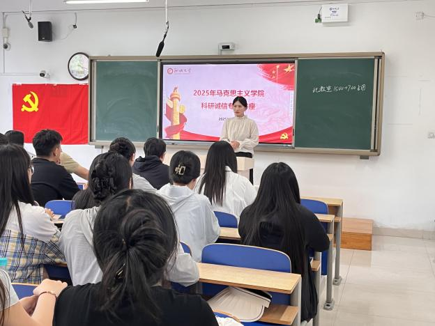 会议伊始,张倩倩传达了《教育部关于加强高等学校科研诚信建设和学术不端治理的指导意见》核心文件,重点围绕“存在问题学位论文”的认定标准展开解读,明确“数据造假、抄袭剽窃、买卖代写、违规署名”等行为的界定范围。她指出,学术论文是大学生培养质量的“试金石”,科研诚信则是学术生命的“防火墙”,二者相辅相成,缺一不可。科研诚信不是选择题,而是必答题,一丝一毫的侥幸都可能毁掉学生学术前途和学院的公信力。