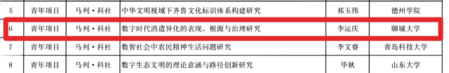 近日,山东省哲学社会科学工作办公室公布了2025年度山东省社会科学规划研究项目立项名单,我院张丽老师申报的课题“黄河流域(山东段)红色文化史料整理与研究(1921-1949)”获批一般项目立项,李运庆老师申报的课题“数字时代消遣异化的表现、根源与治理研究”获批青年项目立项。