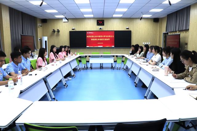 4月29日,山东中医药大学太阳集团城娱8722党委副书记孙倩、青年教师程诚等师生一行来我院交流学习,学院党委副书记、副院长范华亮,团委书记史仁扩,辅导员李雨桐以及研究生会骨干成员在6号教学楼A101室与客人座谈交流。