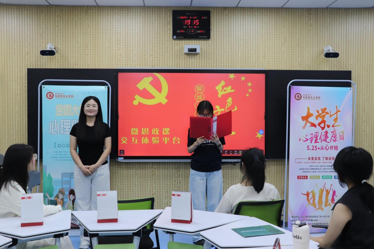 增强心理健康教育,守护心灵健康成长。5月16日,我院开展第三十四期思政年历微思政课交互体验活动——大学生心理健康日,习近平新时代中国特色社会主义思想青年学习会骨干成员邵晓雅、张如新担任主讲人。