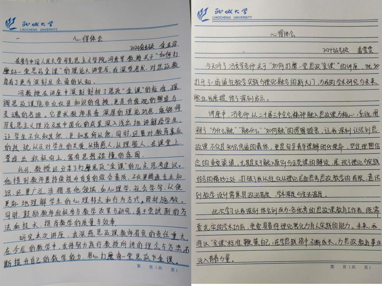 通过本次理论大讲堂的学习,同学们深刻领悟到思政课不仅是知识传授的阵地,更是价值观塑造的沃土。作为新时代青年,既要在思政课堂中深学细悟,汲取精神养分;更要将所学所思转化为行动,在社会实践、志愿服务中躬身力行,努力成长为有理想、敢担当、能吃苦、肯奋斗的时代新人,勇担民族复兴的历史重任。