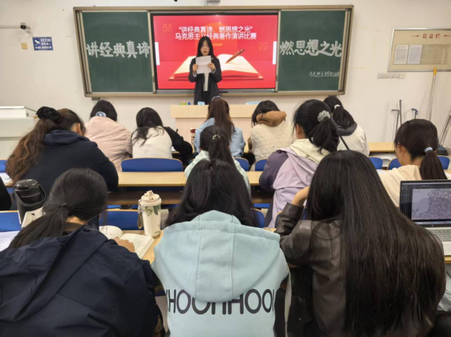 自学校学风建设工作全面推进以来,太阳集团城娱8722紧扣立德树人根本任务,深入实施 “M-Light” 学风点亮计划,全力打造多层次、可持续的育人新生态。作为该计划中“T-Theory”维度的核心实践载体,为引导学生深化对马克思主义经典著作的理解,提升理论素养与口头表达能力,营造学院良好的理论学习氛围,11月8日,太阳集团城娱8722于东校区6#A201举办“讲经典真谛,燃思想之光”演讲比赛。