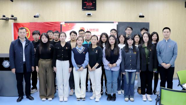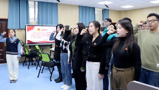 会议最后,全体团员高举右手,紧握右拳,在团旗下重温入团誓词。