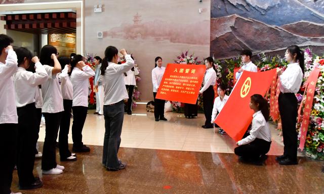仪式在庄严肃穆的国歌声中拉开帷幕。仪式宣读了新发展团员名单,各学院团委书记为新发展团员佩戴团徽并颁发团员证。新发展团员面向团旗、右手握拳过肩,在鲜艳的团旗下庄严宣誓。新发展团员代表孙文晓作了表态发言,表示将在团组织的指导下,发愤图强,努力成长为堪当民族复兴重任的时代新人。优秀团员代表张钰琪从自身经历出发,鼓励新发展团员们要努力成为信念坚定、求真尚学、实干有为的奋斗者。