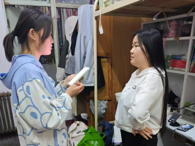 宣讲政策进宿舍,精准答疑零距离。宣讲人员采取“案例分析+数据对比”方式,运用可视化图表展示近几年西部计划志愿者的服务地域分布、岗位类别占比等数据,助力同学们全面掌握相关信息。针对同学们集中关注的待遇、考研优惠政策、服务期限等内容,宣讲人员或结合《大学生志愿服务西部计划项目政策》等文件,或利用往届西部计划志愿者实例,向同学们答疑解惑。
