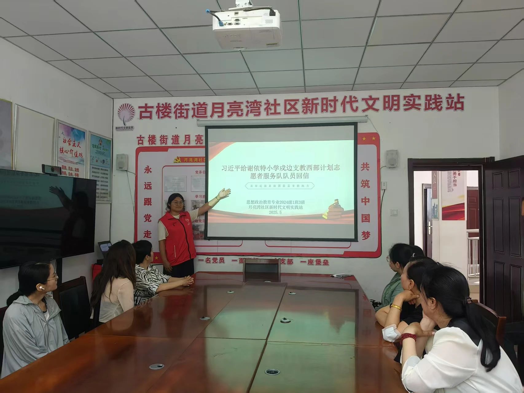 团支部成员紧扣总书记回信精神的核心内容,以谢依特小学志愿者团队扎根海拔3200米高原支教点、自制138件教具、开发9门藏汉双语课程的感人事迹为切入点,结合支教团队“帐篷教室”“马背课堂”等创新实践,深入阐释“把小我融入大我”的精神内涵,并鼓励社区居民从身边小事做起,将回信精神融入日常生活,积极参与社区志愿服务,共同营造互助友爱的社区氛围。互动交流环节,社区居民与团支部成员围绕“如何在平凡岗位践行回信精神”展开热烈讨论。