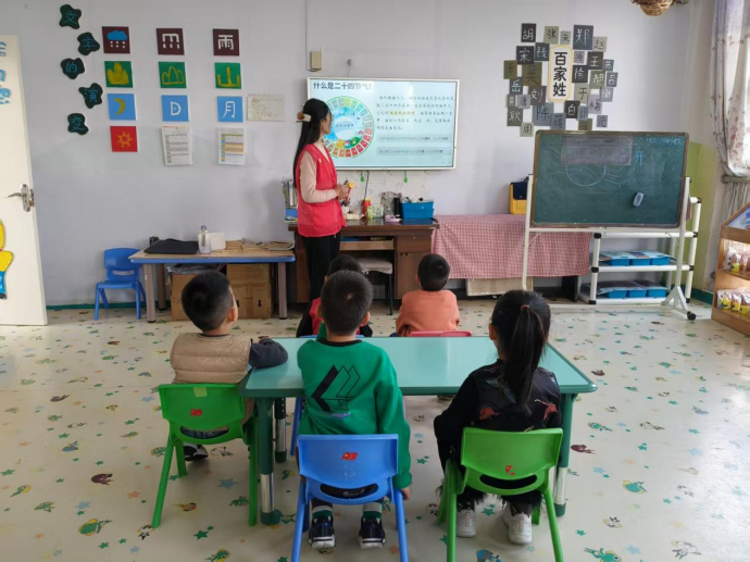 活动现场,志愿者们依托精心制作的PPT,以四季为脉络,对立春、夏至、大雪、冬至等典型节气进行深入浅出的讲解。讲解过程中,志愿者们巧妙地将歌词中的节气与对应的气候特征、物候现象及民间习俗相联系,并穿插趣味问答,使孩子们在寓教于乐的互动中,将旋律记忆转化为具体认知,深化了对节气文化内涵的理解。