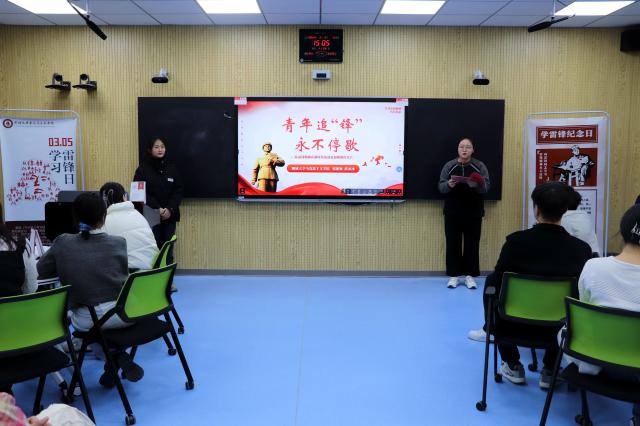 薛冰冰以“青年追‘锋’ 永不停歇”为主题,深度融合专业特色,结合生动形象的图文和视频,从雷锋生平简介、何为雷锋精神、新时代青年践行雷锋精神三个方面进行了阐述,带领同学们向雷锋同志学习,让雷锋精神薪火相传。她谈到,雷锋精神经久不衰、历久弥新,是中国共产党人精神谱系的重要组成部分,已经成为亿万中国人民心中一座巍峨的道德丰碑。新时代新青年要赓续雷锋精神,把奋斗的汗水挥洒在党和人民最需要的地方,让雷锋精神在全面建设社会主义现代化强国伟业征程中绽放更加璀璨的光芒。