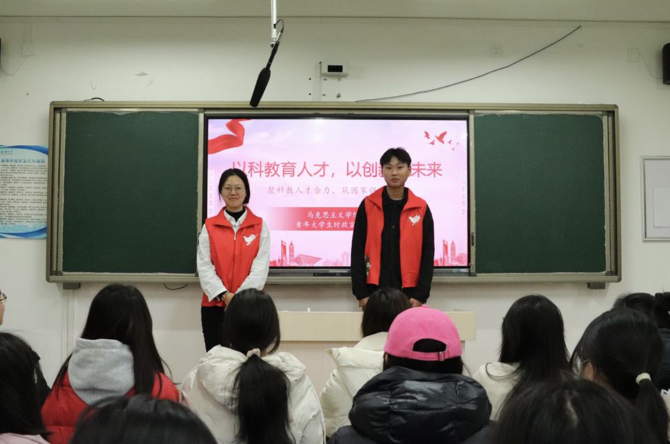 宣讲团成员以“以科教育人才,以创新筑未来”为题,结合党的二十大报告,从科教之新我来看、科教之合力我来谈、强盛之基我来探三个方面入手,充分介绍了我国自党的十八大以来科技事业取得的历史性成就和新时代实施科教兴国战略的部署,并重点讲述了当代青年如何立足自身角色定位践行科教兴国战略,把个人发展规划融入国家发展大局。宣讲团成员讲到,在百年未有之大变局下,中华民族正处于迈向伟大复兴的重要战略机遇期,实施科教兴国战略,对突破“卡脖子”难题,登上更多关键领域、核心技术的“山顶”具有长远的战略意义,更是大家不可逃避的责任和使命。事不避难,义不逃责,广大青年要以实际行动践行科教兴国战略,在祖国最需要的地方建功立业,向世界展现中国青年之力量,建设盛世之中华。