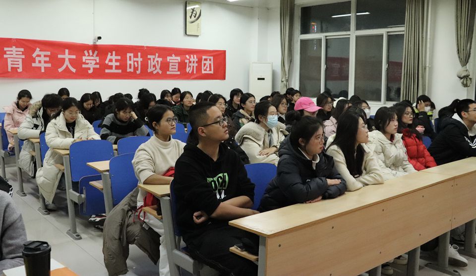12月19日,我院青年大学生时政宣讲团成员钟翠、孙富硕在6号楼C205室作习近平新时代中国特色社会主义思想宣讲,政治与公共管理学院2023级学生代表参与此次宣讲会。
