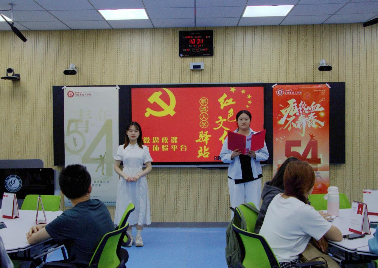 弘扬五四精神,激扬青春力量。4月27日,我院开展第三十一期思政年历微思政课交互体验活动——五四青年节,习近平新时代中国特色社会主义思想青年学习会骨干成员刘金霞、王佳慧担任主讲人。