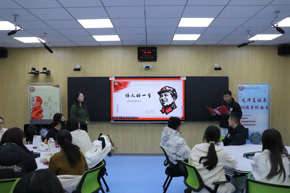 12月23日,我院开展第八期思政年历微思政课交互体验活动——毛泽东诞辰130周年纪念日,习近平新时代中国特色社会主义思想青年学习会骨干成员王顺、段纪乐担任主讲人。