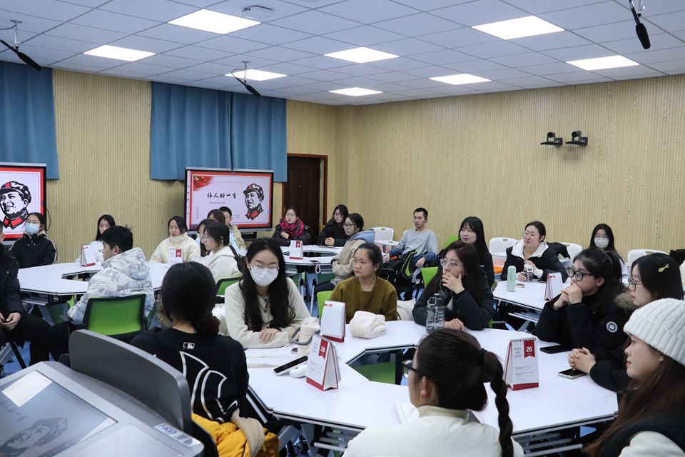 王顺以“伟人的一生”为主题,深度融合专业特色,结合生动形象的图文和视频,对少年毛泽东、青年毛泽东进行了讲解,特别是针对毛泽东的革命生涯展开了重点阐述,带领同学们学习伟人事迹,感悟革命精神。她谈到,毛泽东同志为中国新民主主义革命的胜利、社会主义革命的成功以及社会主义建设的全面展开,为实现中华民族的独立和振兴、中国人民的解放和幸福,作出了彪炳史册的伟大贡献。毛泽东同志属于中国,也属于世界,他不仅赢得了全党全国各族人民的爱戴和敬仰,而且也赢得了世界上一切向往进步的人们的敬佩,他的名字、他的思想和他的风范将永远鼓舞着我们继续前进。