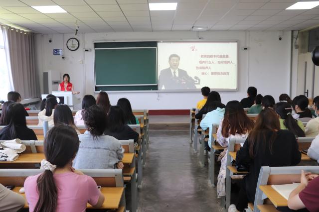 宣讲团成员以“坚定理想信念,勇担时代使命”为题,结合生动的图文资料和张桂梅老师感人至深的办学事迹,从坚定崇高的理想信念、增强必备的技能本领、担当时代的复兴大任三个方面,深入浅出地阐释了新时代青年如何勇担时代大任、投身伟大事业。宣讲团成员讲到,中国的教育就是要培养一代又一代拥护中国共产党领导和社会主义制度,立志为中国特色社会主义事业奋斗终身的有用人才,培养德智体美劳全面发展的社会主义建设者和接班人,作为新时代青年,我们应坚定崇高的理想信念,练就过硬的技能本领,与历史同步伐、与时代共命运,才能担当起时代的复兴大任,赢得光明的未来!