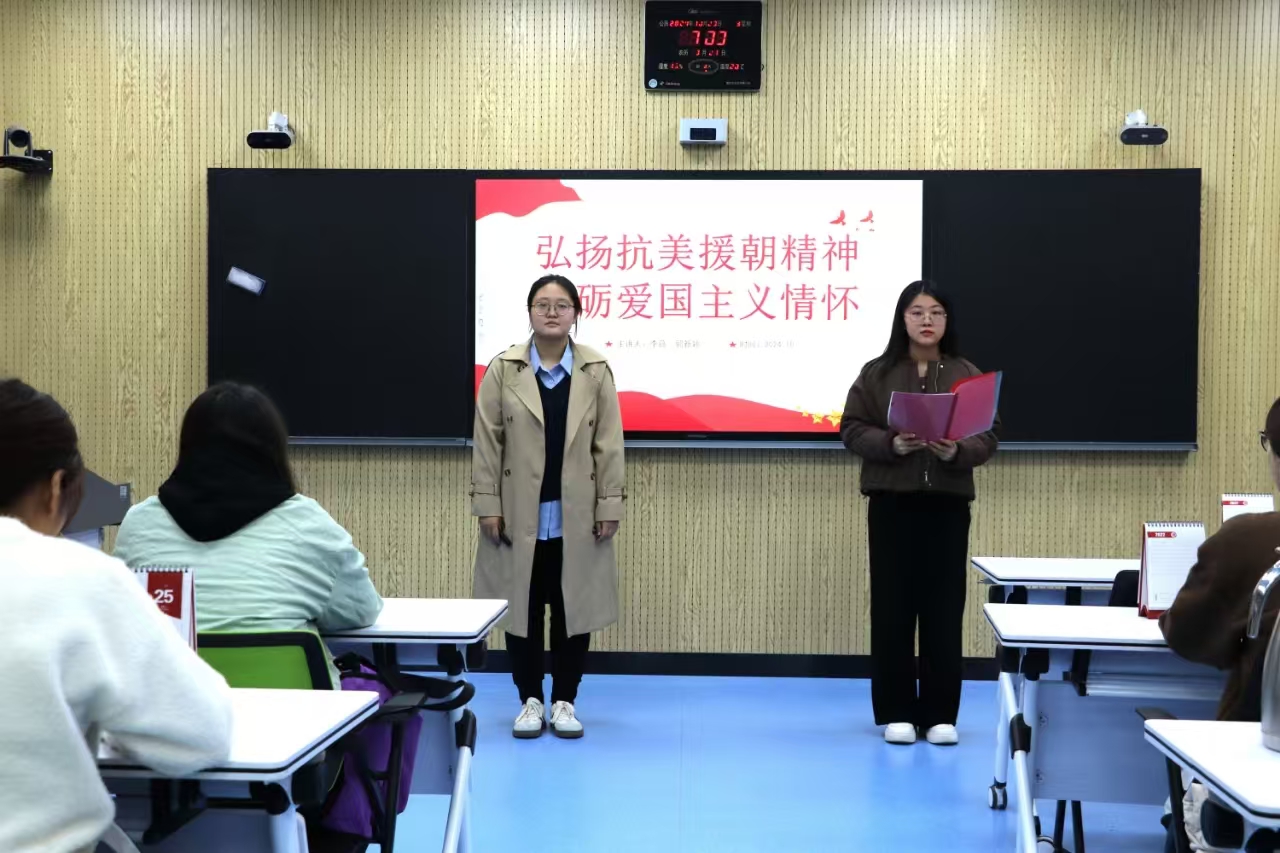 10月23日,我院开展第二十一期思政年历微思政课交互体验活动——抗美援朝纪念日,习近平新时代中国特色社会主义思想青年学习会骨干成员郭新颖、李薇担任主讲人。