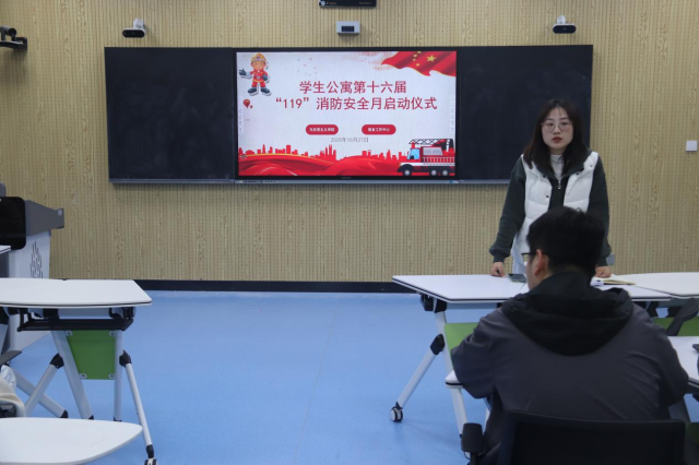 为全面提升学生消防安全意识,切实筑牢校园安全防线,10月27日,太阳集团城娱8722于东校区6#A101举办学生公寓第十六届“119”消防安全月活动启动仪式。本次活动由辅导员裴新丽主持,各年级班团干部与舍长代表参加。