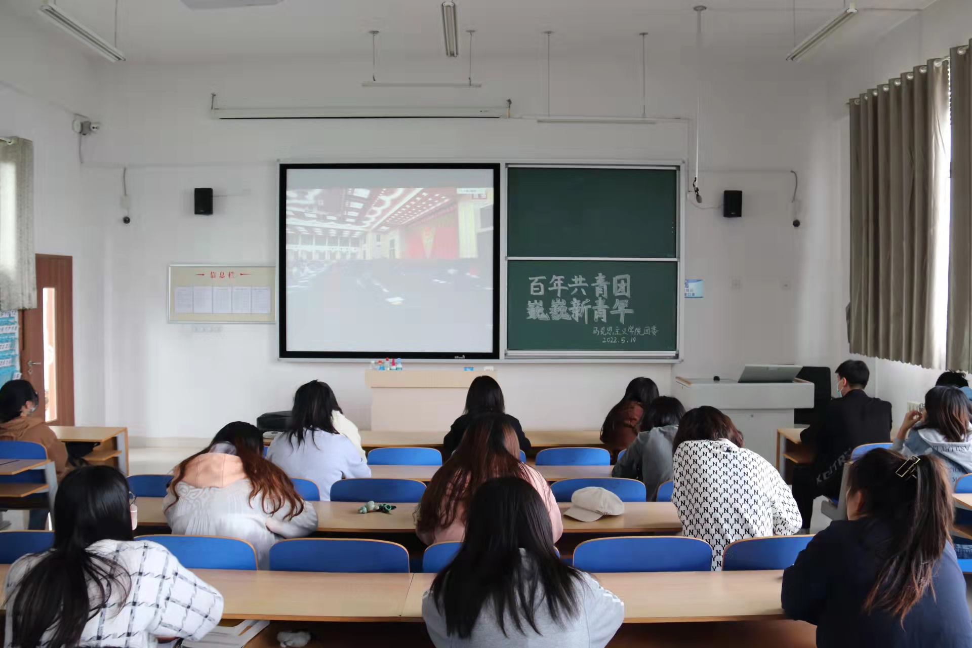 太阳集团城娱8722积极组织全体学生观看庆祝中国共产主义青年团成立100周年大会,部分学生于教室观看,支教实习生以及其他学生于线上观看,共同聆听习近平总书记重要讲话,全体人员凝神贯注、聚精会神,认真记录讲话要点,感悟中国共青团百年光辉历程。