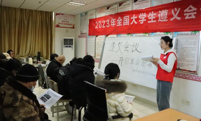 12月20日,我院青年大学生时政宣讲团成员孟煜、惠亨昀在丽水社区开展了题为《遵义会议—开启革命的新篇章》的宣讲,社区居民代表参加此次宣讲活动。
