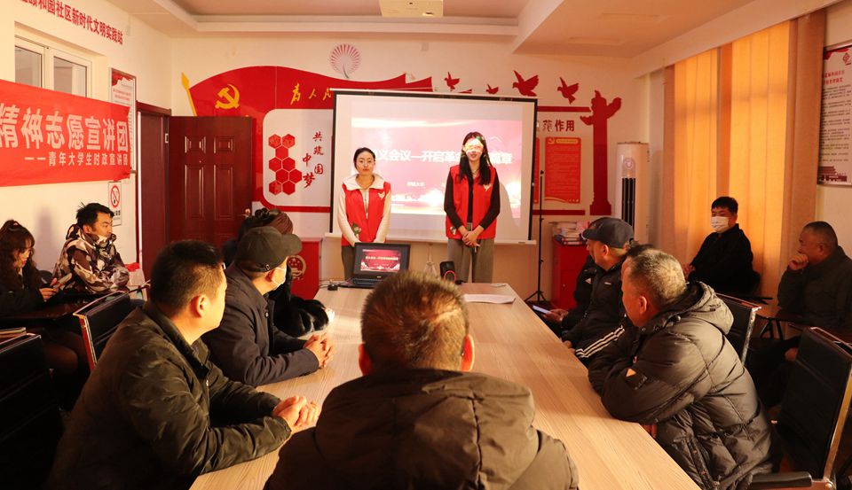 12月1日,我院青年大学生时政宣讲团在聊城市新区街道办事处颐和园社区开展了题为《遵义会议—开启革命新篇章》的宣讲活动,宣讲团成员郭昊铭、孟煜担任主讲人,颐和园社区居民代表参加此次宣讲活动。