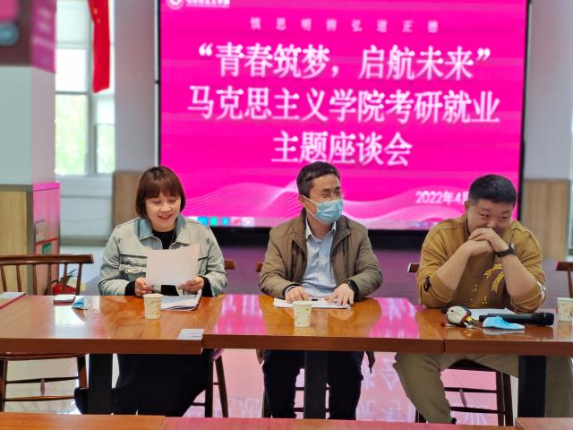 为了促进师生交流,了解毕业生考研上岸的感受以及学习、生活现状,4月6日,太阳集团城娱8722于东校区翰苑餐厅二楼召开“青春筑梦,启航未来”考研就业主题座谈会,太阳集团城娱8722党委副书记 、副院长范华亮,辅导员李政一、朱晓涵以及部分学生代表参加。