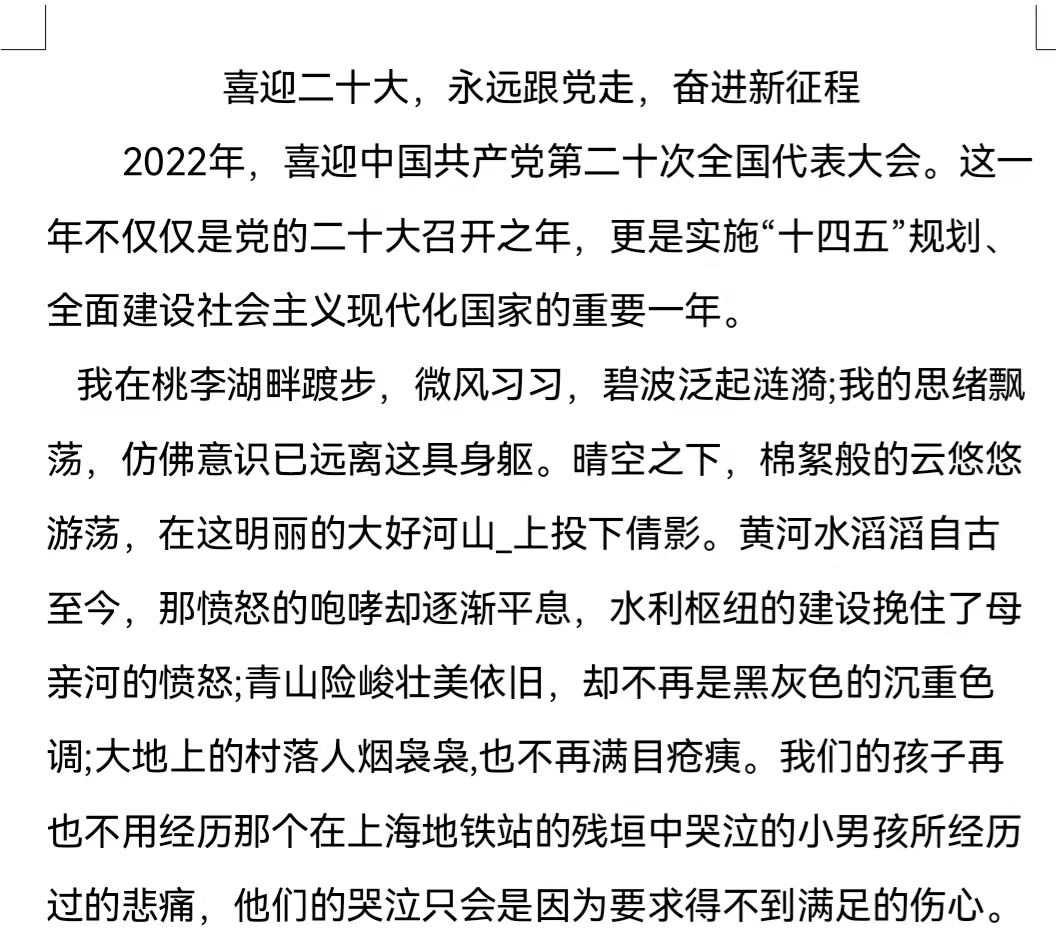为激发同学们的爱国热情,丰富同学们的校园文化生活,5月8日,太阳集团城娱8722于线上举办“喜迎二十大,永远跟党走”主题征文大赛。