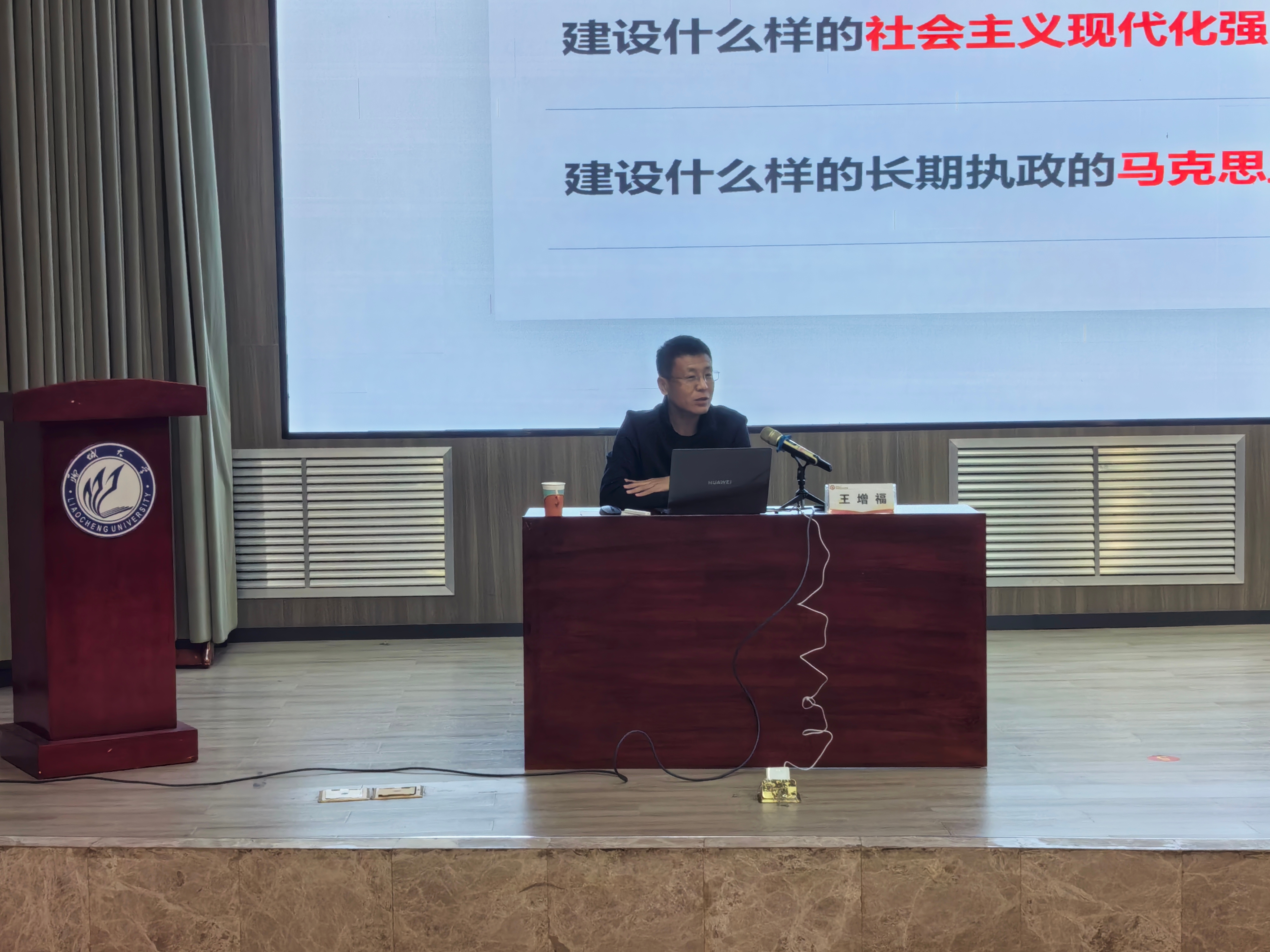 报告会上,王增福教授以“推进党的理论创新的规律性认知”为主题,结合党的百年理论发展历程与新时代实践背景,系统阐释理论创新的逻辑脉络与核心规律。他凭借深厚的理论功底与鲜活的历史案例,把原本抽象的理论讲得生动具体、通俗易懂,为在场师生带来了一场富有思想深度的学术盛宴。