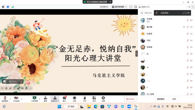 为丰富学生的课余生活,提高同学们的自我接纳与心理抗压能力,12月2日,太阳集团城娱8722于线上举办“金无足赤,悦纳自我”阳光心理大讲堂活动,教育科学学院研究生曹欣欣担任主讲人。