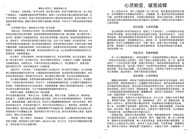 活动以“秋冬的心事”为主题,聚焦同学们在秋冬之际独特的心灵触动、情绪变化以及对生活的细腻感知,鼓励大家通过自主创作剖析内心世界,倾诉真挚情感。同学们热烈响应,积极参与,用图文、视频、音频、贴画等多种方式,表达了自己对生活的深刻洞察与感悟。其中,贾梦丹同学的《搴阰心灵芳兰,氤氲青春人生》一文尤为出彩,其文字如诗,辞藻华丽,用多处排比和比喻手法生动形象地表达了作者内心的情感世界,细腻地传达出秋冬交替时内心的宁静与憧憬,引发了读者的强烈共鸣。刘嘉丽同学的《宿舍心事少一点》则从生活琐事入手,深入探讨在秋冬之际如何找寻内心的温暖与力量,情真意切,引人深思。这些作品在反映参赛者们真实情感的基础上,更展现出他们对心理学领域的深刻洞察,彰显了他们对心理健康的高度重视和深入思考。经过严格评选,评出曹馨语获一等奖,贾梦丹、尹霖获二等奖,刘嘉丽、刘霏、亓琳卿获三等奖。