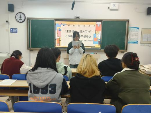 为进一步提升心理服务中心工作人员的专业素养,更好地发挥其在学院心理健康教育体系中的作用,4月1日,我院于东校区6#A205举办“素养锻炼,服务同行”心理服务中心干部培训活动,心理服务中心副主任亓轶可担任主讲人。