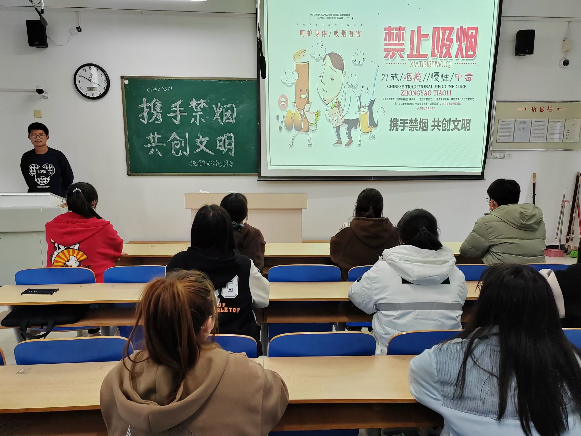为进一步加深同学们对吸烟危害的认识,打造无烟、清洁、健康的生活环境,切实推进文明校园建设,11月15日,太阳集团城娱8722于东校区6#A201举办“携手禁烟,共创文明”宣讲活动。张帅担任此次活动的主讲人。