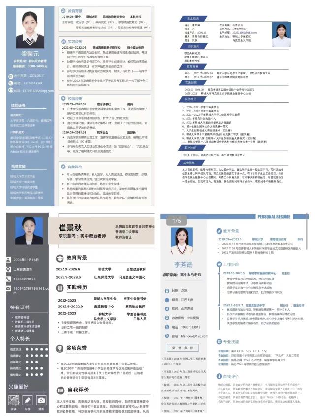 展青春风采,为职场赋能。参赛选手围绕个人信息、求职意向、教育背景、职业经历、荣誉奖项、兴趣爱好六个方面展开,并融入自身创意,制作出版面大方、内容条理、设计新颖的个人简历,充分展现出参赛大学生的个人风采。其中,李芳霞制作的简历尤为突出,她结合目标岗位需求,突出相应的知识技能,并锁定关键词语,用较为具体的表达方式叙述自己的实践经历及收获。同时,简历的设计风格大胆创新、配色协调、富有美感,各部分结构合理有序,将自己的优势充分表现出来。评委根据选手的内容进行综合打分,最终,李芳霞、崔景秋、梁馨元等七人入围复赛。初赛结束后,同学们纷纷表示此次简历制作大赛对自己未来求职有很重要的意义,今后将加强对于简历的排版和设计等相关知识的学习,注意细节,改进不足之处,进一步提高简历制作的水平。