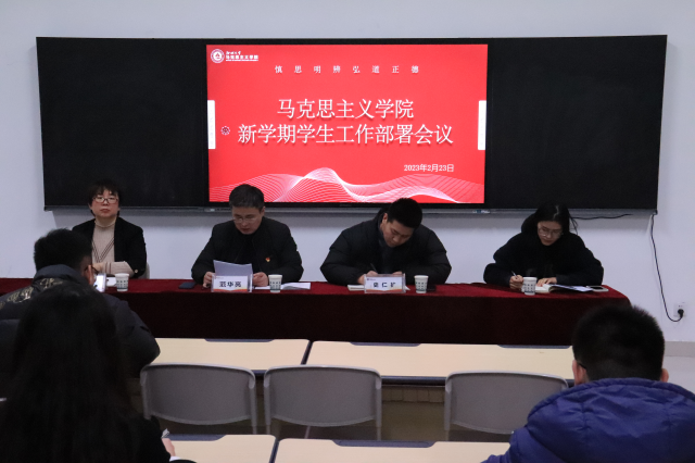 2月23日,马克思主义院召开新学期学生工作部署会议,学院党委副书记、副院长范华亮,团委书记史仁扩,辅导员李红霞出席会议。