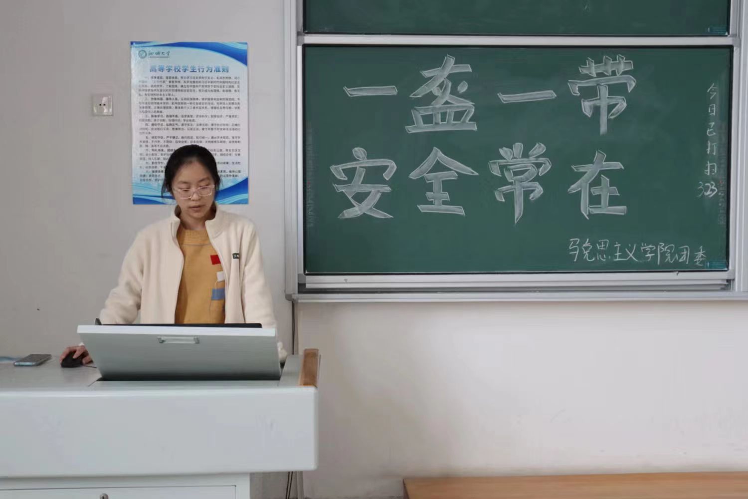 活动围绕为什么要佩戴安全头盔、怎样正确佩戴安全头盔等问题,为大家讲解交通知识,并播放公安部交通管理局、交通部道路运输司等单位联合摄制的系列影视科教片《文明出行 安全驾驶》。影片以新颖独特的手法,讲述了不规范出行带来交通事故所造成的危害,帮助学生们更全面深入地了解交通法规、提升交通安全防范意识,保障个人交通安全。
