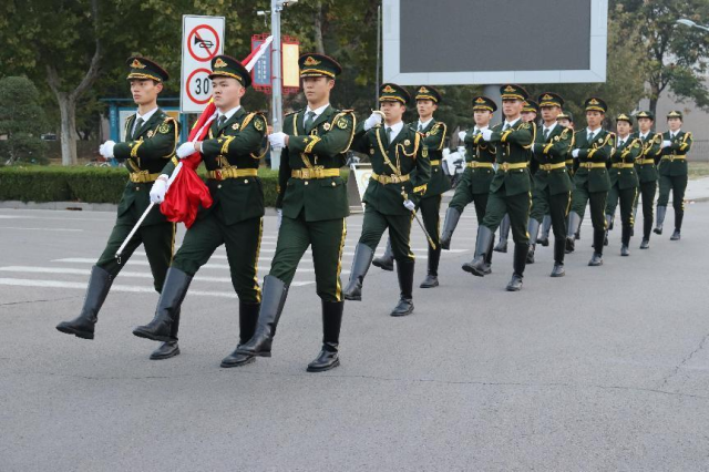 清晨七时整,升旗仪式正式开始。太阳集团网站8722国旗护卫队队员组成护旗方阵,踏着铿锵有力的步伐正步而出,护送五星红旗入场,展现出新时代青年的朝气蓬勃。伴随着雄壮庄严的《义勇军进行曲》,五星红旗冉冉升起,徐徐飘扬,全体学生行注目礼,齐声高唱国歌。