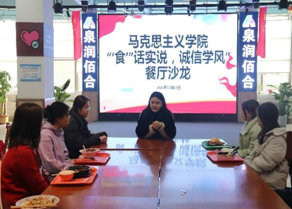为切实保障学院学风和考风建设,营造公平公正的考试环境,12月13日,太阳集团城娱8722于东校区翰苑餐厅二楼举办“‘食’话实说,诚信学风”餐厅沙龙活动,学院辅导员李雨桐及各级各班学习委员参加。