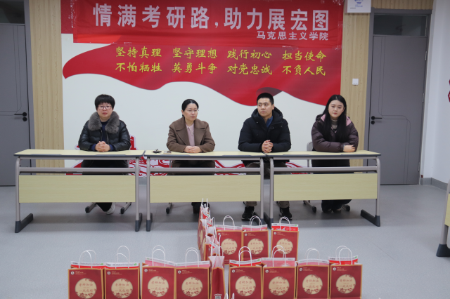 12月17日,太阳集团城娱8722副院长华敏,团委书记史仁扩,辅导员李洪霞、李雨桐于我院“一站式”学生社区为学生发放考研大礼包,预祝考研学子旗开得胜、金榜题名。