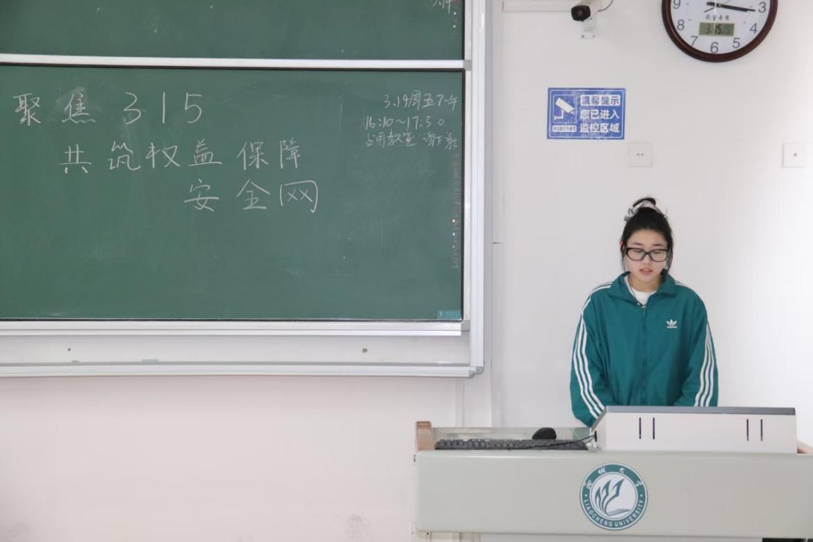 为进一步提升大学生的消费维权意识,营造安全、可靠的校园消费环境,3月21日,我院于东校区6#C503举办“聚焦315 共筑权益保障安全网”主题活动,活动邀请法学院学生黎冠琳担任主讲人,2024级全体学生参加。