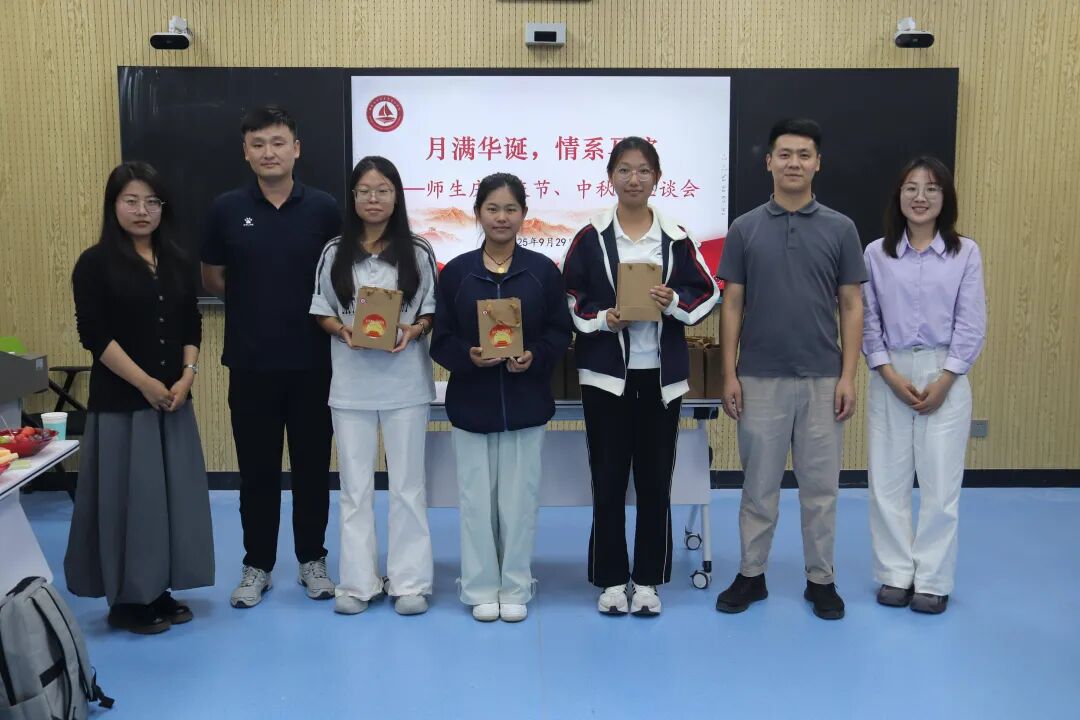 座谈尾声,老师们为学生代表送上精心准备的双节礼品,将节日的暖意与对学子们的期许一并传递,现场氛围温馨又充满力量。