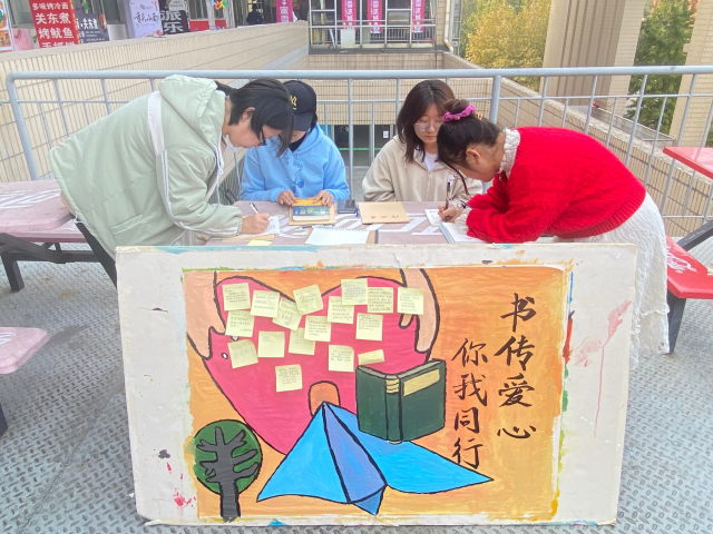 “用书本传递爱心,让渴望的眼睛看到希冀的曙光。”王瑞琛讲述了捐赠活动的理念、流程以及活动要求,并说明本次捐助的物品将会送至贫困地区,为需要的孩子们送去温暖和关怀。同学们在便利贴上写下自己的祝福并张贴在展板上。其中,写着“希望你们可以读书启智,可以读书明理”的便利贴尤为瞩目,这小小的一张便利贴承载了他对贫困地区孩子们的牵挂。随着爱心捐书活动的有序开展,捐赠的物品也逐渐丰富多样,既有充满童趣的故事类,也有历史悠久的名著类,还有崭新的笔记本等。活动负责人在旁边做好记录,并整理捐赠书本的情况。这些书本承载了同学们的一片爱心,为远方贫困的孩子们送去一份健康向上的精神食粮,撑起一片知识的天空。
