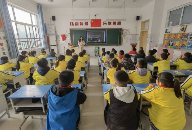 爱心支教行,冬日暖童心。徐丽以一张金城战役图为切入点,讲述了奇袭白虎团的故事,引出这节课讲解的英雄人物——杨育才。杨育才是一位人民志愿军,为抗美援朝的胜利作出了不朽的贡献。徐丽结合相关课程的教学内容,先后播放了《抗美援朝》和《金刚川》精彩片段,带领大家走进英雄杨育才的世界,感悟他的家国情怀。通过展示金城战役的地图路线和作战双方军事实力的数据对比,同学们明白抗美援朝战争过程的艰辛,作战双方力量悬殊大,战争胜利的不易,从而牢记英雄事迹,学习英雄身上不畏艰难和有勇有谋的革命精神。在课堂结束后,徐丽解答了同学们的关于英雄杨育才的问题,同学们也都说出自己感悟,他们的话语中充满了对英雄的尊敬,纷纷表示会好好学习,把杨育才英雄当做自己的榜样。