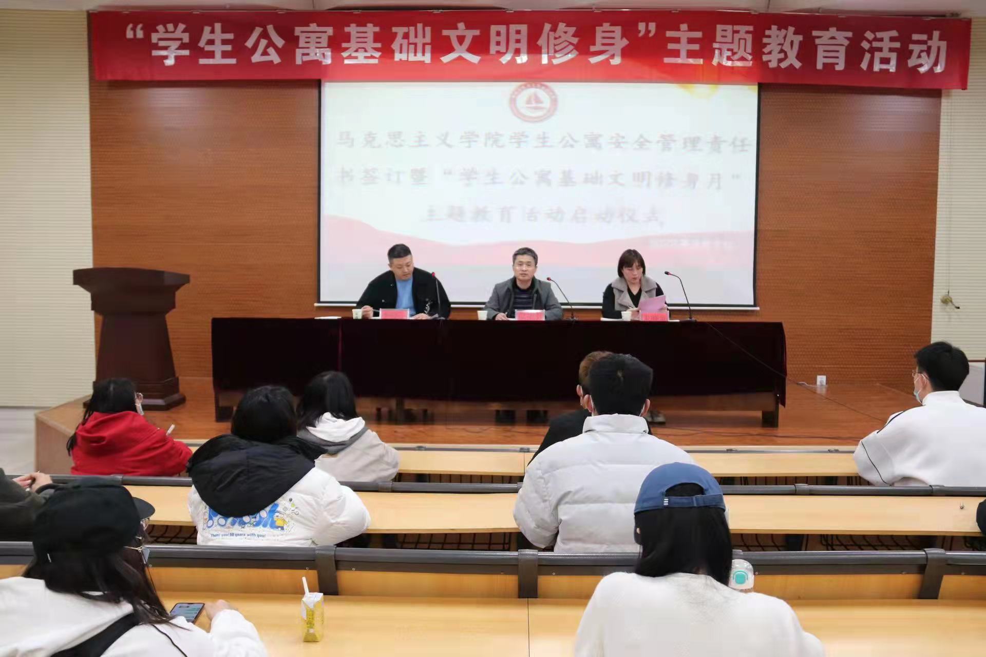学院学生公寓安全管理责任书签订暨“学生公寓基础文明修身月”主题教育活动启动仪式,不仅有利于普及宿舍文明安全知识,提升宿舍成员的基本素养,夯实宿舍卫生基础,而且有助于贯彻“安全、秩序、文明、整洁”的宿舍理念,培养学生良好践行社会主义核心价值观。