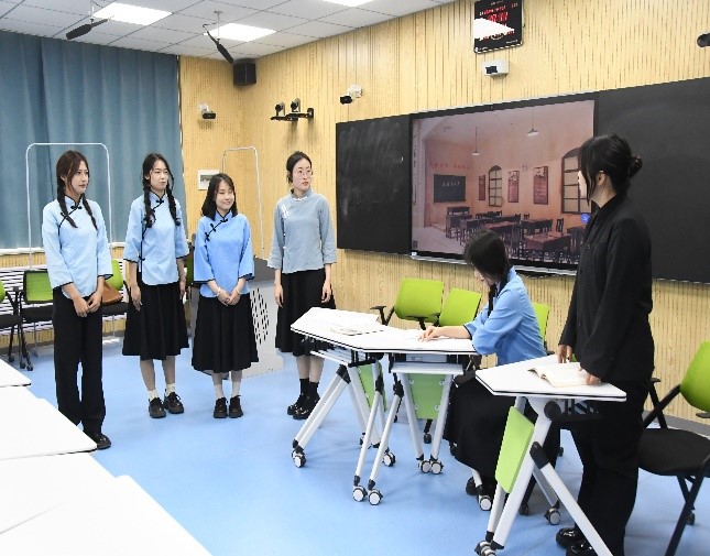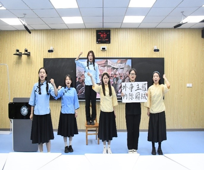 《破晓》思政课程剧以五四运动为历史背景,通过沉浸式的教学模式,让同学们深入了解并体验了那段波澜壮阔的历史。课程剧融合了朗诵、表演、合唱等多种艺术表现方式,将五四精神生动地呈现在观众面前。在剧中,同学们扮演了不同角色,无论是热血的学生、坚定的知识分子,还是勇敢的爱国人士,他们都用自己的方式诠释了五四精神。他们深情朗诵,激情表演,合唱出青春的旋律,展现出对国家的热爱和对未来的憧憬。
