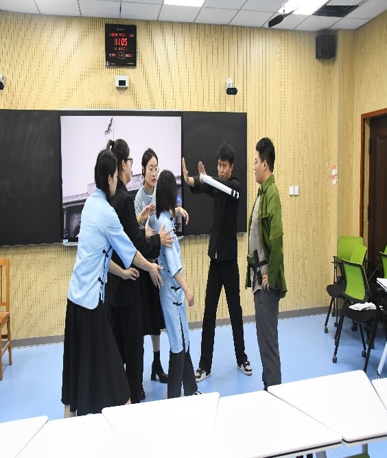 思政课程剧打破了传统的思政课教学模式,积极拓展第二课堂。从剧本研创到舞台展演,参演学生共同打磨、挑选题材,深入研讨剧本,用戏剧眼光再创文本、以团队力量协同创演。从舞台效果重塑角色,近20名研究生、历时20余天精心编创《破晓》思政课程剧,让思政课“活”了起来,让学生从知识走向实践、从实践走向认知、从认知走向外化,更好地反哺课堂教学,是我院开展思政课改革创新的重要举措。
