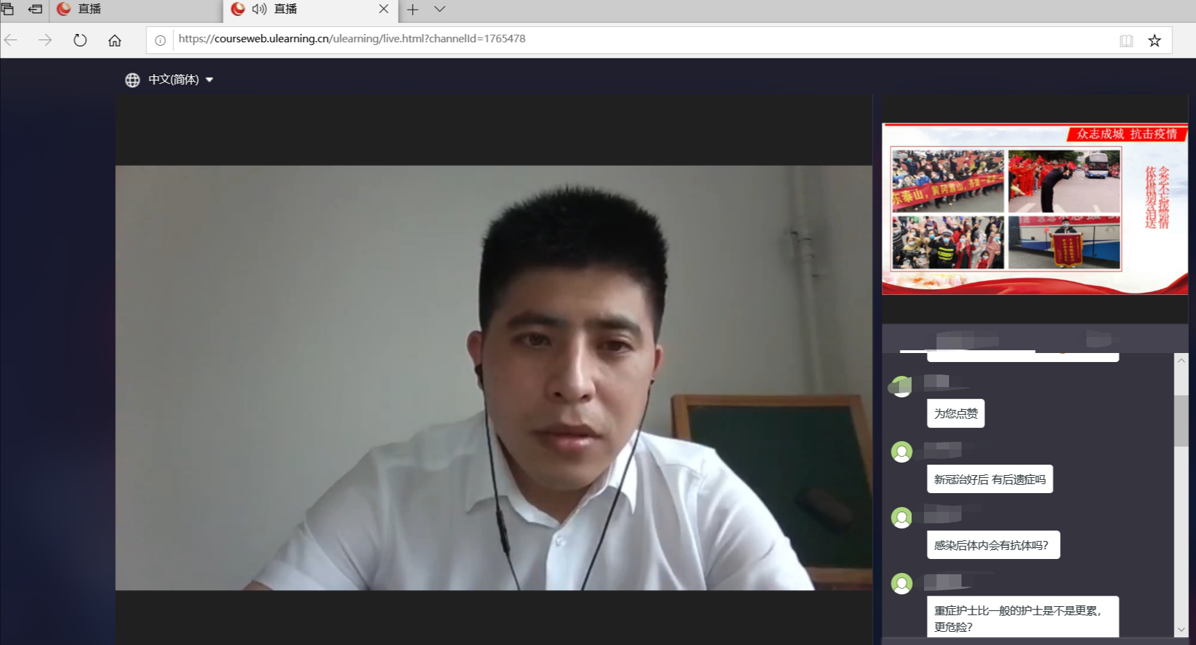 图为田龙营直播驰援鄂战疫经历现场