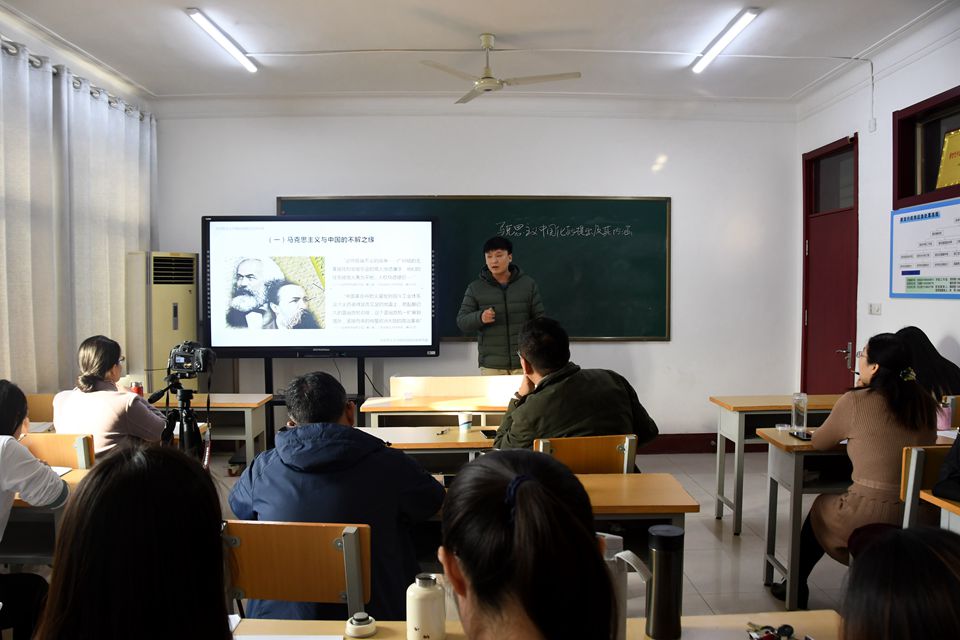 本次比赛分教学设计、课堂教学两部分,共有12名青年教师参赛,参赛选手从3个教学设计方案中随机抽取1个,并选取其中 20 分钟的内容进行了课堂教学展示。比赛过程中,各参赛教师以课本内容为基础,结合视频资料和文献资料,通过生动的教学语言将新的学术研究成果融入课堂,在确保教学内容正确性和明晰性的同时充实了教学内容,通过主板书和副板书的结合运用,逻辑清晰地将课堂内容传递给学生,并通过雨课堂等新型教学方式,及时掌握学生学习动态。