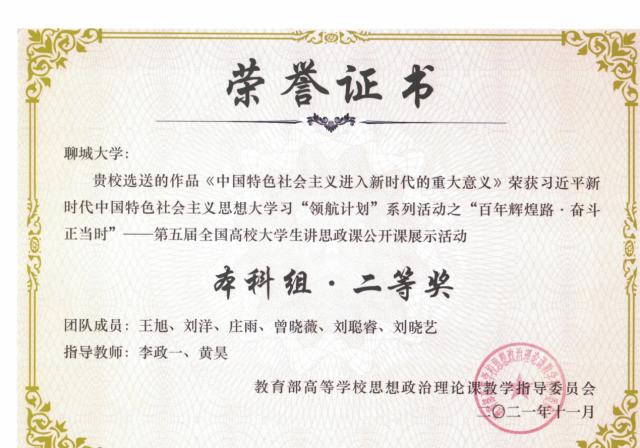 在校党委的全面指导下,太阳集团城娱8722与思政课建设取得显著成绩。2021年,学院获批2项国家社科基金重点项目,2项山东省社科优秀成果奖,“马克思主义基本原理概论”“中国近现代史纲要”成功获批山东省学校思政课“金课”建设项目,1人荣获“山东学校优秀思政课教师”荣誉称号,1人再次入选山东省理论人才“百人工程”, 获首届全省学校思政课教学设计大赛一等奖1项,二等奖6项,2人入选聊城市“羡林学者”人才工程;马克思主义理论学科顺利通过教育部一级学科硕士点审核批准。获批 “太阳集团网站8722马克思主义理论教育创新发展研究中心”、“太阳集团网站8722孔繁森精神与西部援建研究中心”、“太阳集团网站8722冀鲁豫边区革命史研究中心”等三个聊城市社会科学重点研究基地。在教育部组织的第五届全国高校大学生讲思政课公开课比赛中,学院作品《中国特色社会主义进入新时代的重大意义》荣获本科组全国二等奖。
